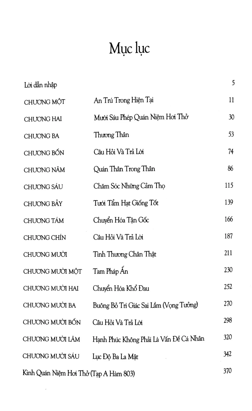 Kinh Quán Niệm Hơi Thở là một kinh thiền tập căn bản của đạo Bụt. Đó là một bản đồ tu tập mầu nhiệm mà Bụt đã khám phá và cống hiến cho chúng ta. Người nào có được bản đồ này trên tay, chắc chắn sẽ không bị lạc đường. Những chỉ dẫn của kinh Quán Niệm Hơi Thở được trình bày trong cuốn sách này rất đơn giản, rõ ràng, dễ hiểu và thiết thực. Đó là cả một kho tàng tuệ giác hết sức thâm sâu. Tiếp xúc được với nguồn tuệ giác ấy thì tất cả những nỗi khổ niềm đau trong ta đều tan biến, hạnh phúc và tự do liền có mặt.
